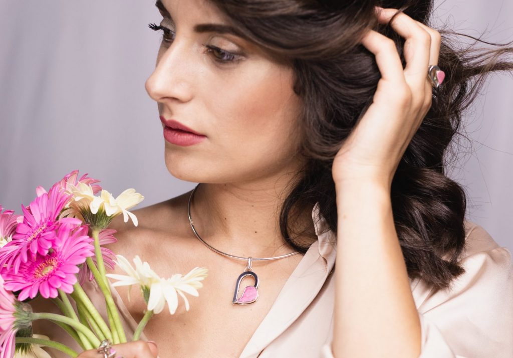 Ogni gioiello, nell’argento lunare, impreziosito da smalti perlati di vari colori, rappresenta una sfumatura dell’amore. Come in una tavolozza di un pittore, i colori si fondono e si sovrappongono raccontando storie di affetto incondizionato, di legami indissolubili, di momenti di gioia condivisa e di promesse silenziose…